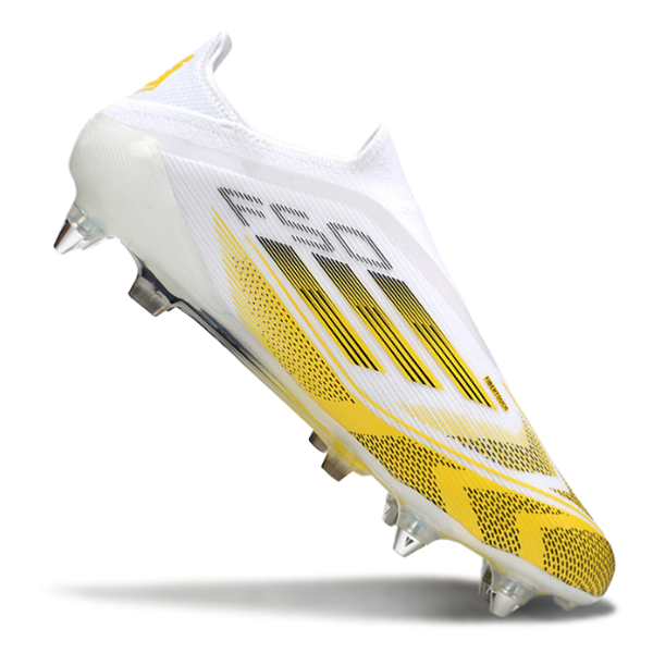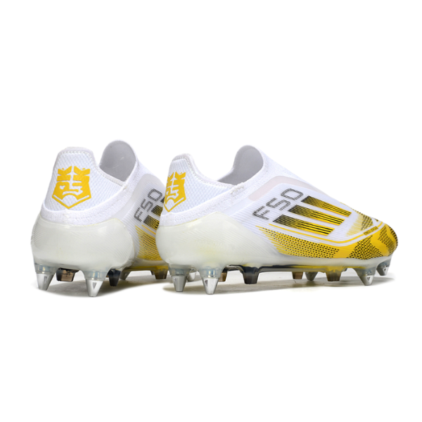 Designed for natural pitches with softer soil, the Adidas F50 Elite Laceless SG offers high-level performance with aluminum studs that ensure greater firmness and stability even on wet grass.